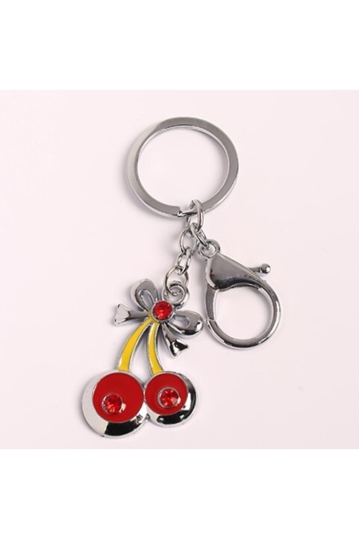 Kiraz Tasarımlı Taşlı Çelik Anahtarlık