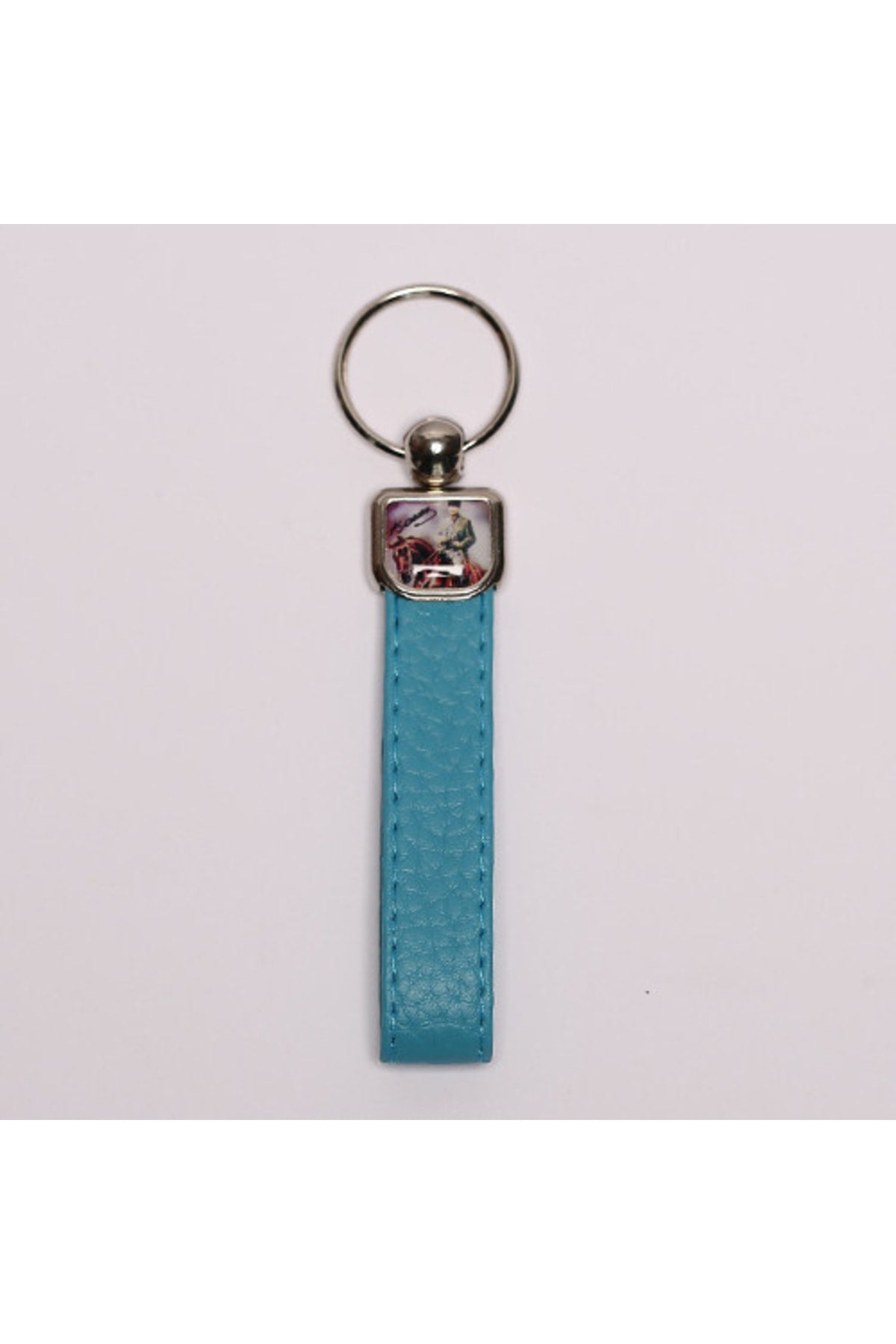Mavi Deri Saplı Çelik Anahtarlık